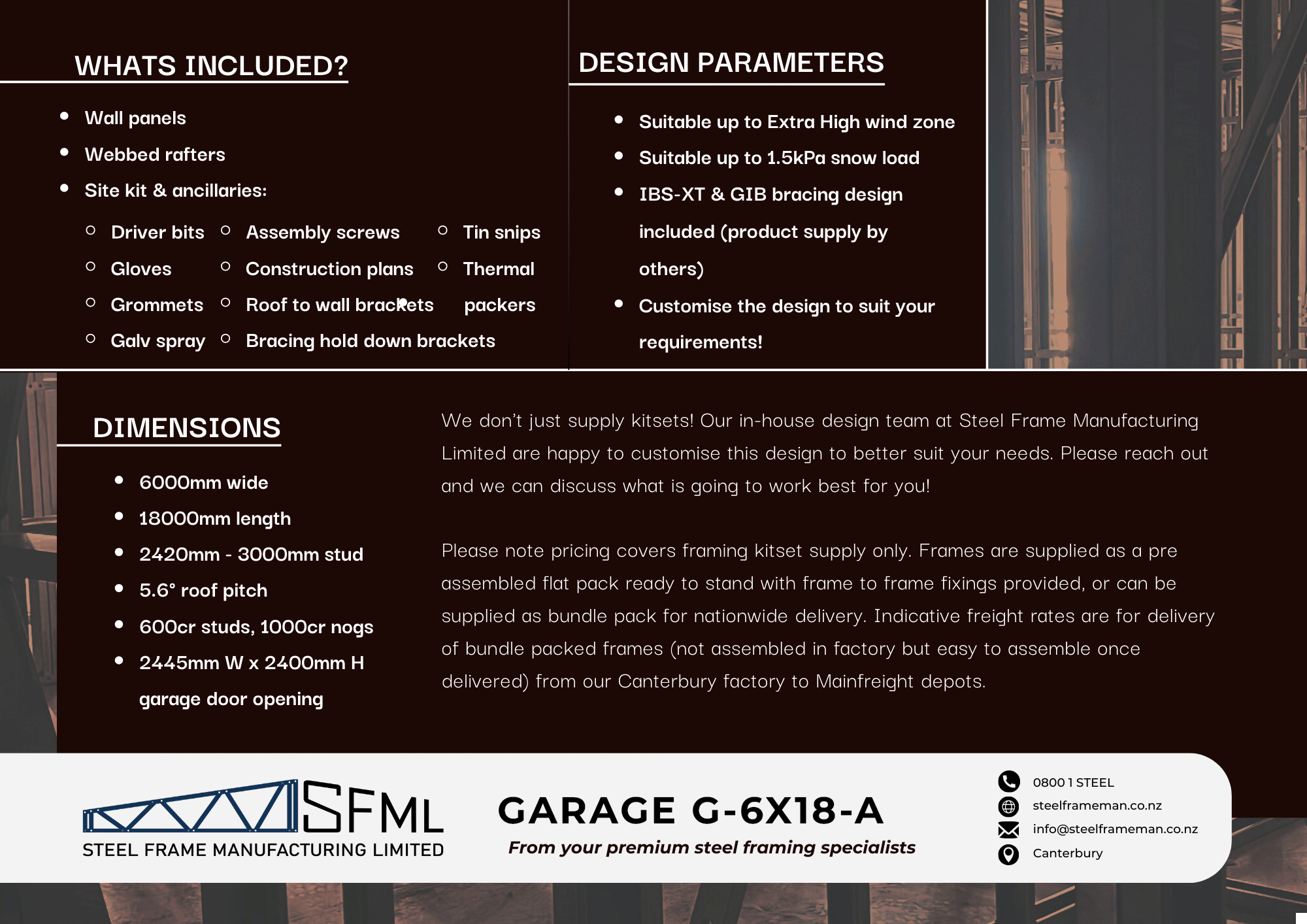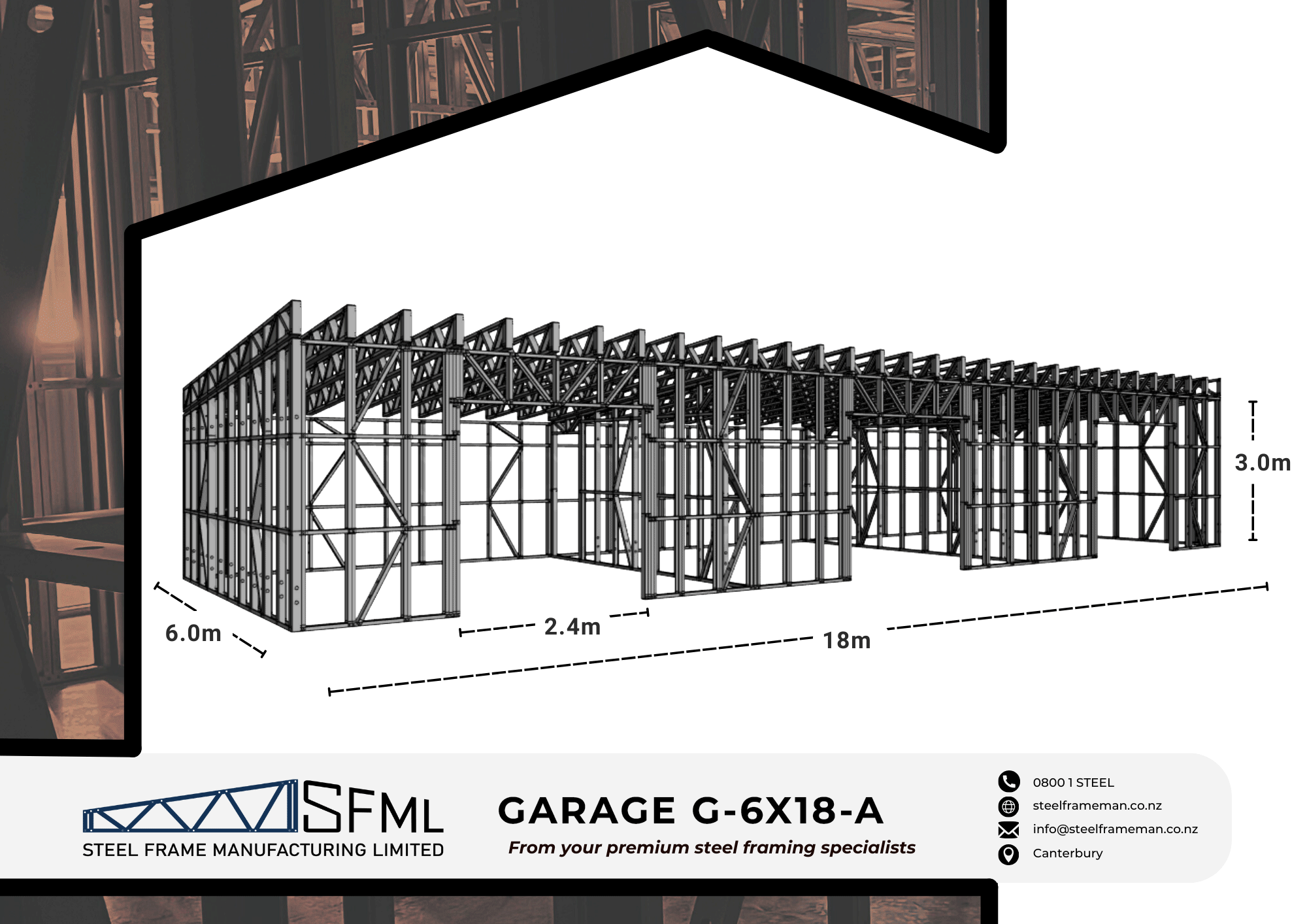 Garage Steel Frame Kitset – 6.0m x 18.0m – A