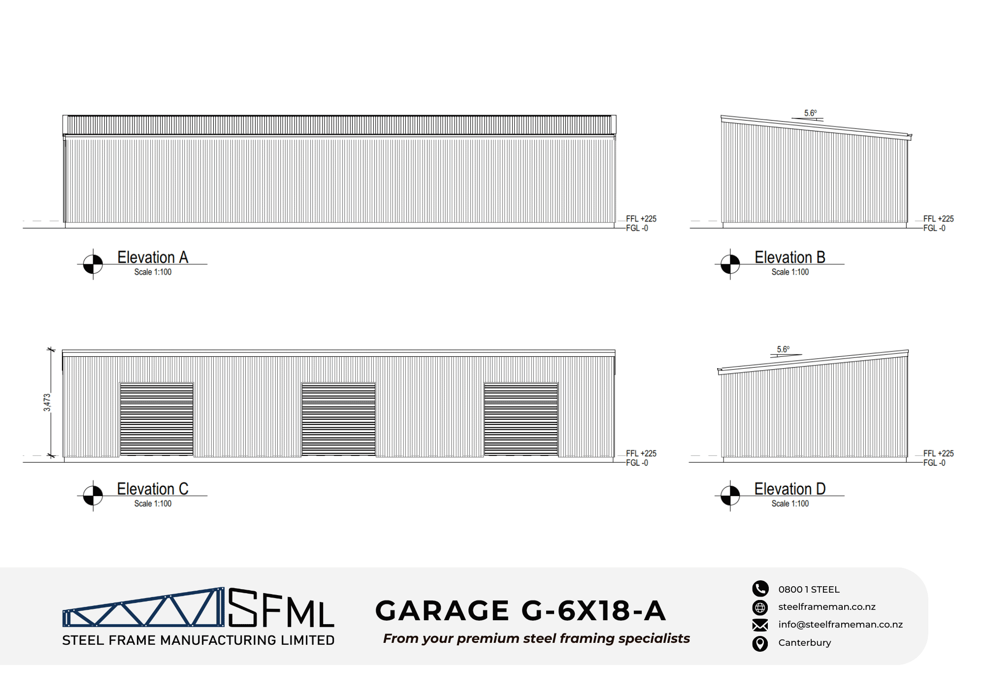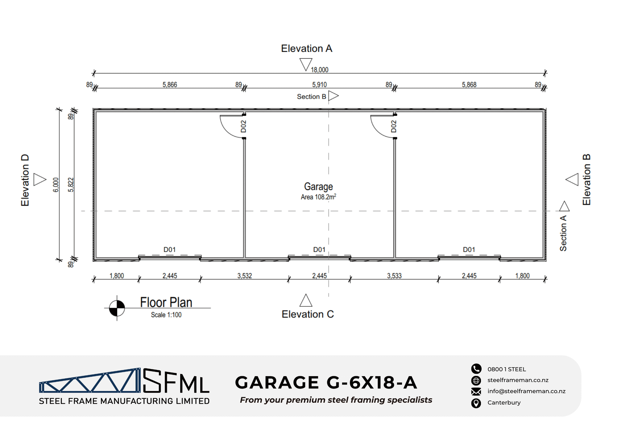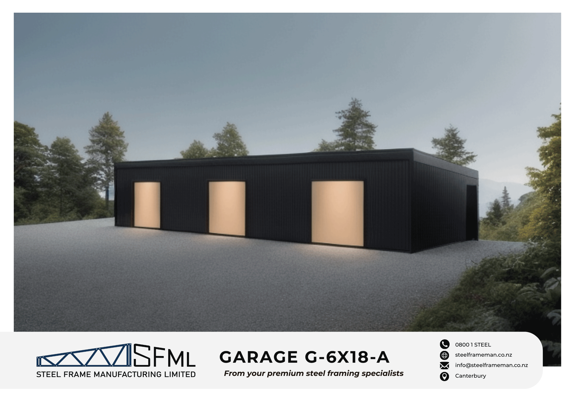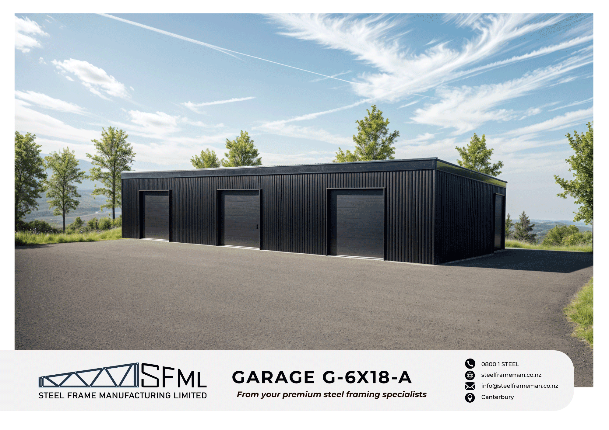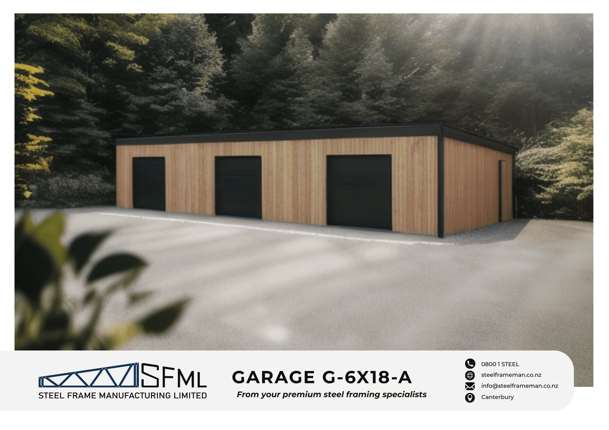 6 m × 18 m (108 m²) Three-Bay Garage Steel Framing Kitset