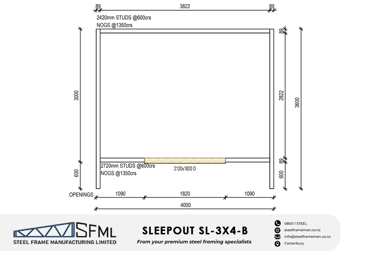 Sleepout Steel Frame Kitset – 3m x 4m – B (12sqm)